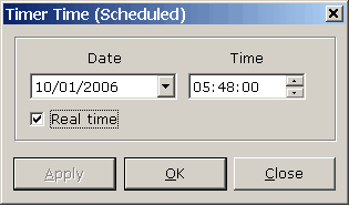 If 'Real time' is checked and the sequence is stopped, the date and time are the date and time the alarm will go off once the schedule has started and the dialog looks like this:
